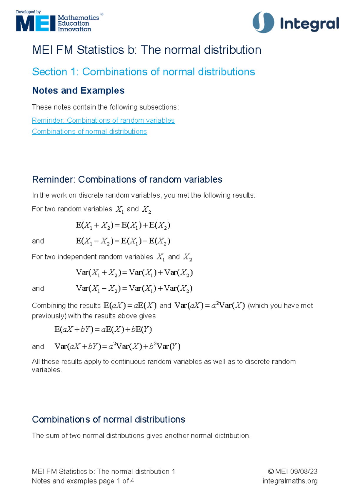 MEI FM Statistics B: Normal Distribution Notes & Examples - Studocu
