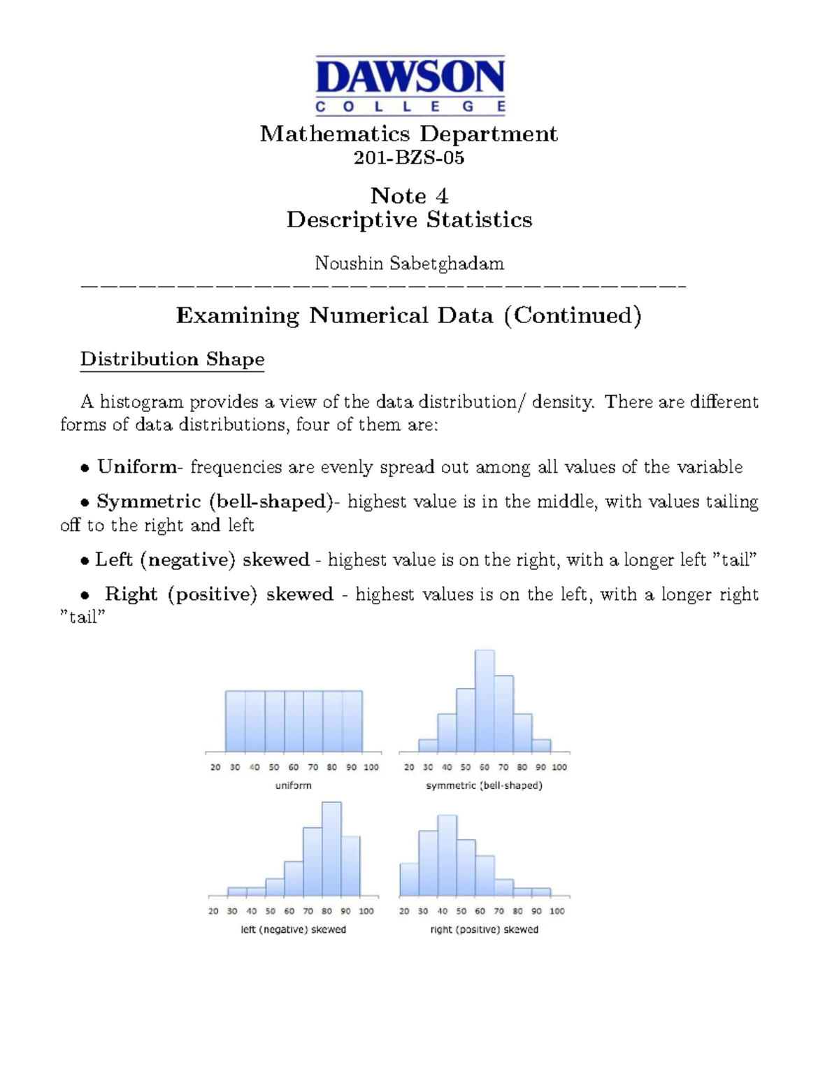 Statistical distribution - Friday, 3 May y Week 4 Statistics Shapes of ...
