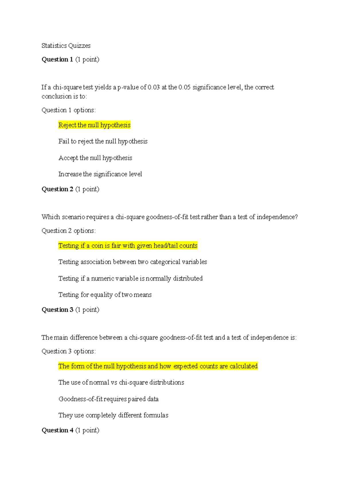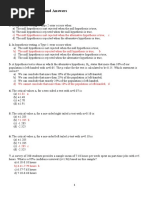 Statistics Quiz: Key Questions and Answers on Hypothesis Testing - Studocu