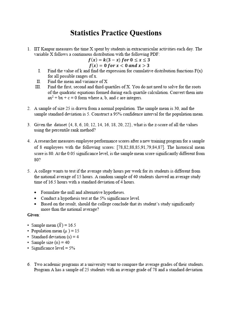 Statistics Practice Questions | PDF | Statistical Significance ...