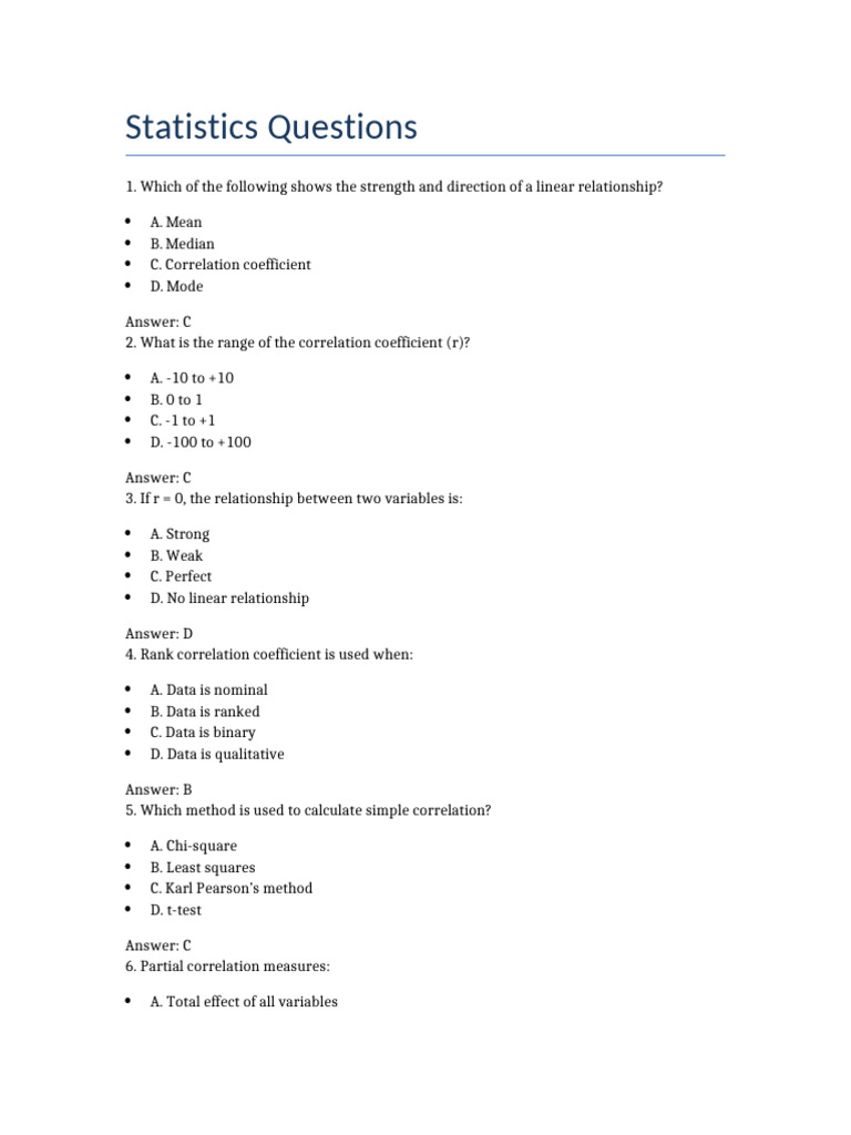 Statistics Important Questions | PDF | Correlation And Dependence ...