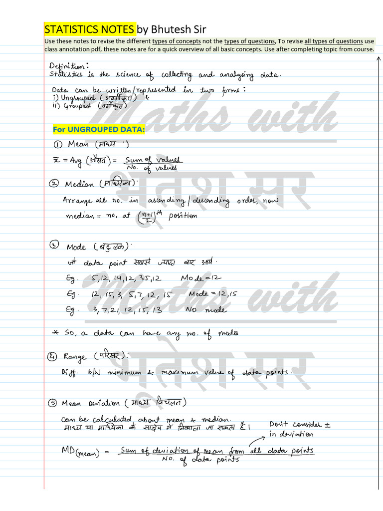 Statistics Notes Handwritten | PDF