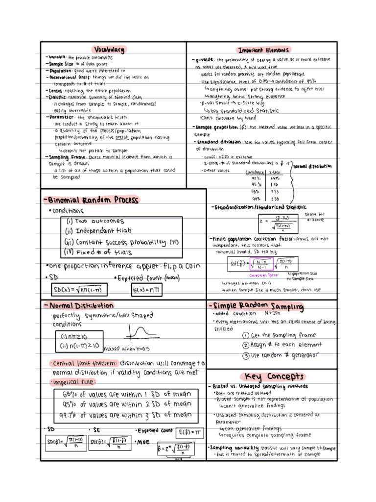 Introductory Statistics Note Sheet | PDF | Normal Distribution ...