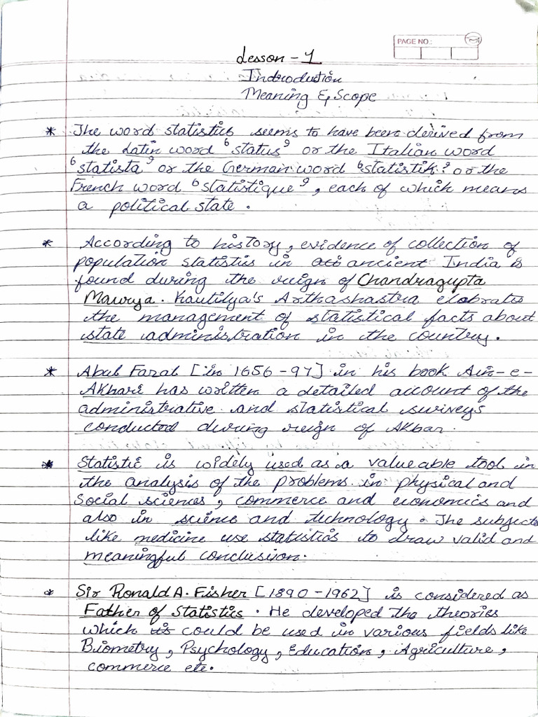 Statistics Hand Written Notes | PDF