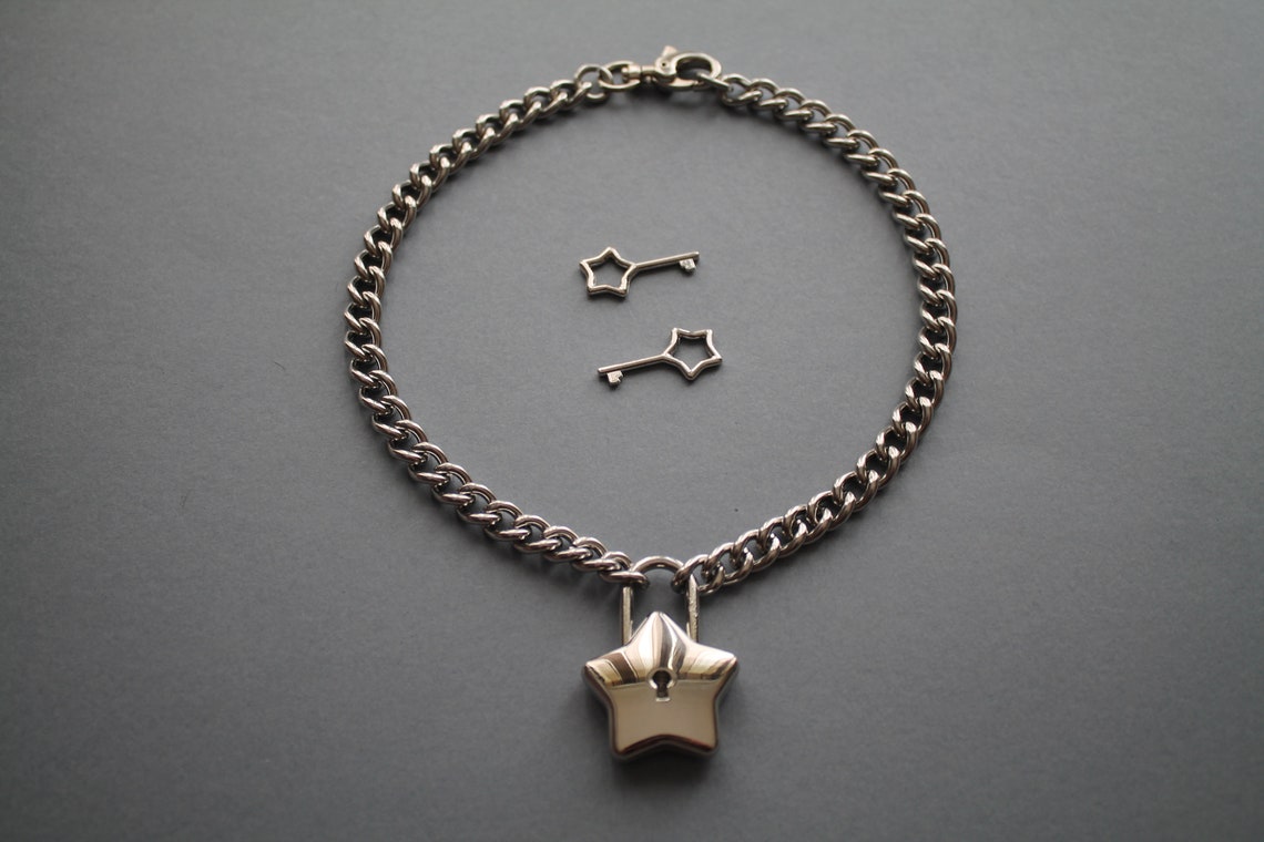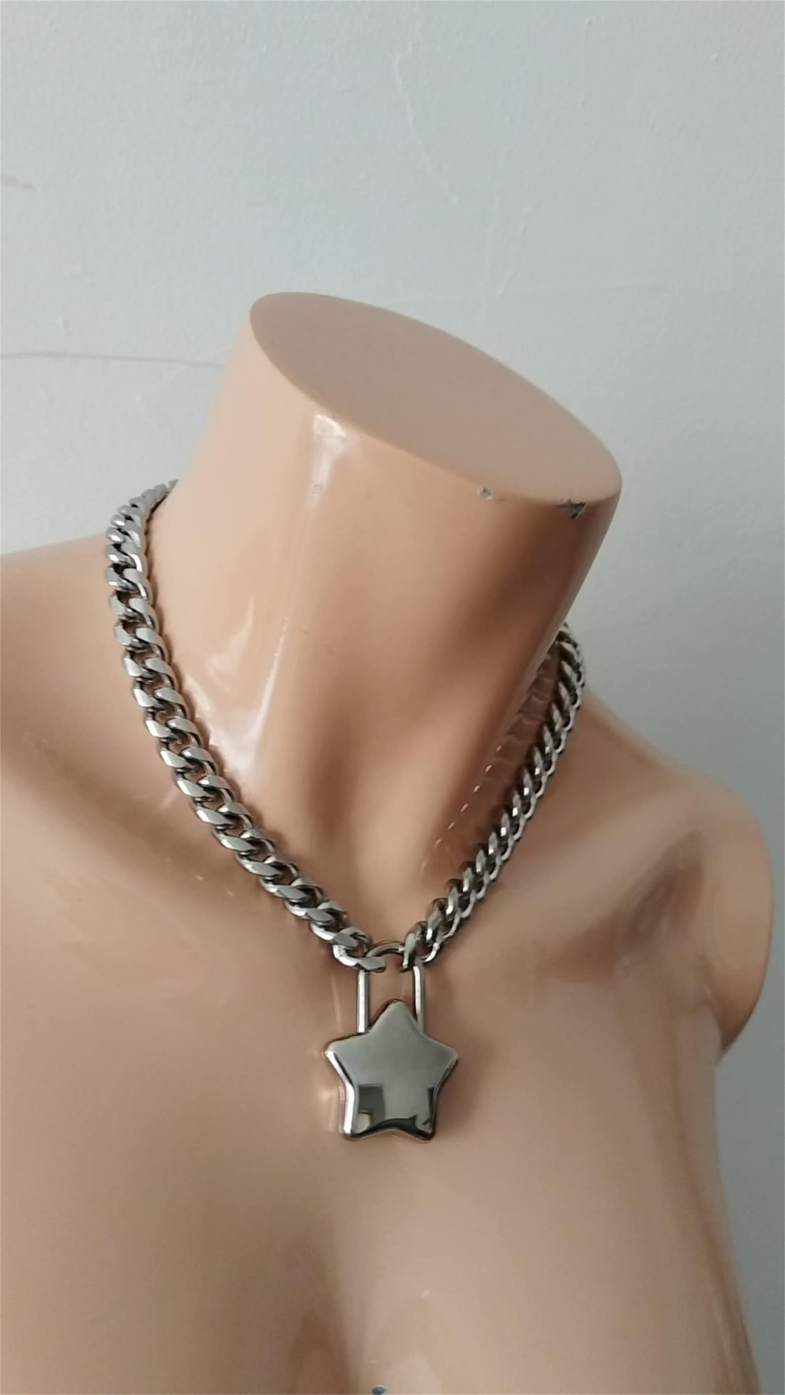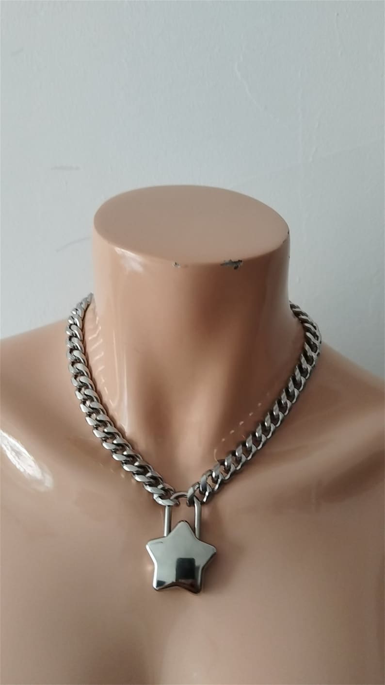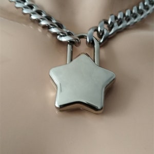 Star Padlock on Stainless Steel Twist Link Curb Chain Choker / Necklace ...