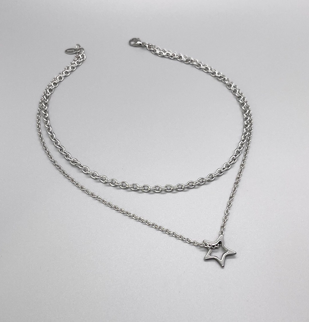 Cable Chain Choker, Star Chain Necklace, Stainless Steel Layered Chain ...
