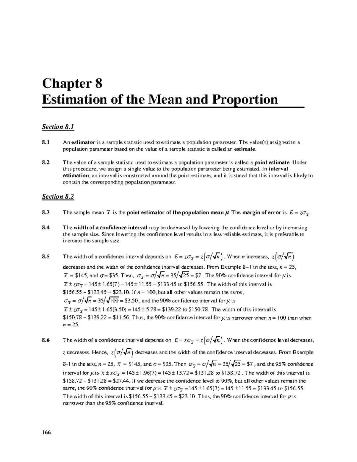 Ch08-9QNP - STATS - Chapter 8 Estimation of the Mean and Proportion 166 ...
