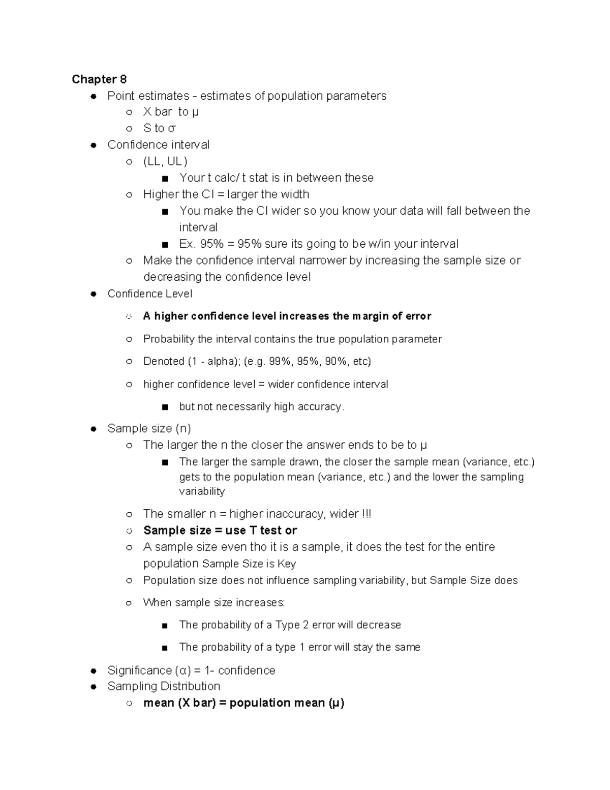 Mathematical Statistics - Chapter 8 First Half Lecture Notes | PDF