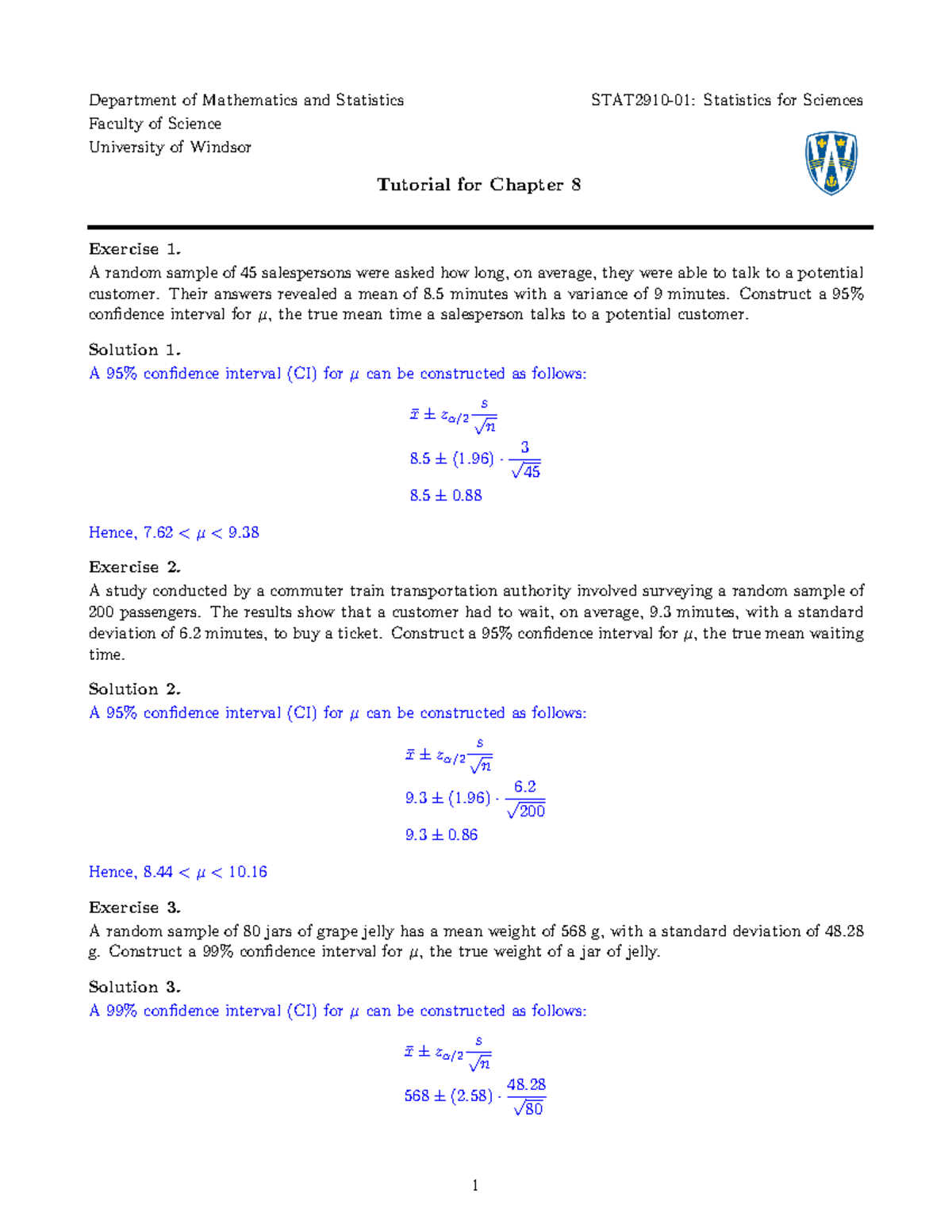 STAT2910 Chapter 8 Tutorial Solution - Department of Mathematics and ...
