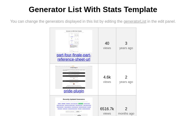 Generator List With Stats Template
