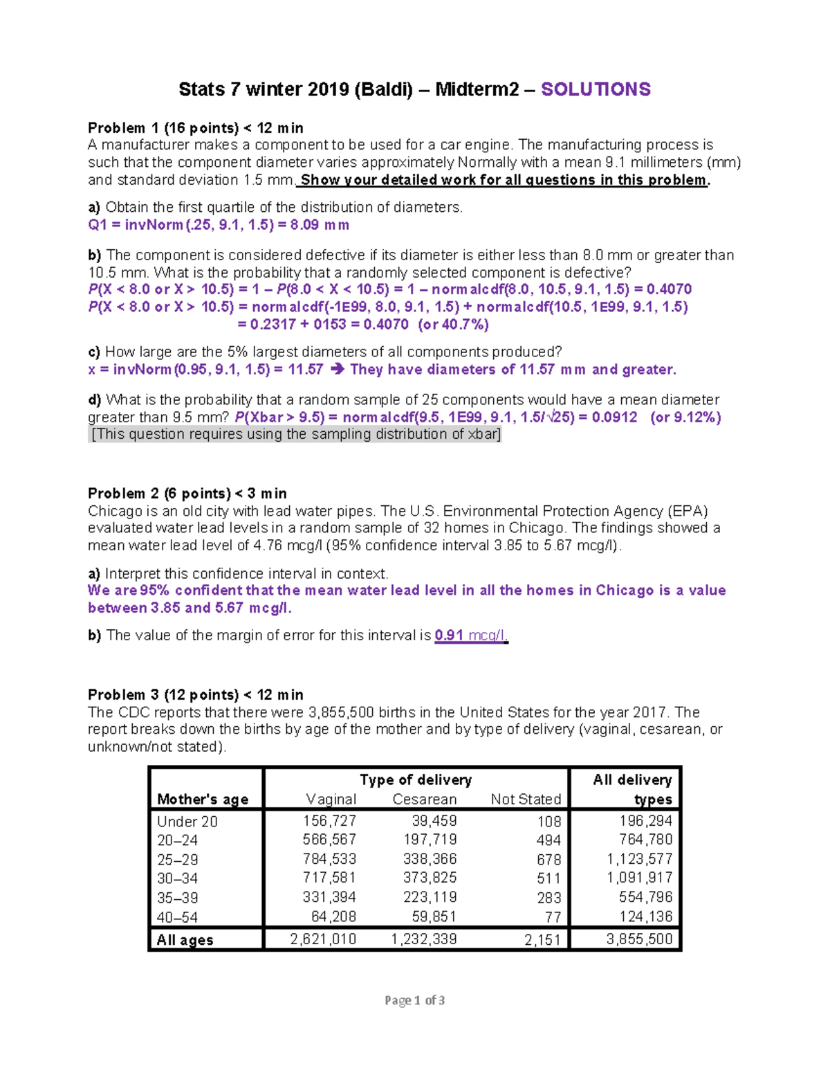 Stats 7w19-midterm 2sol - Page 1 of 3 Stats 7 winter 2019 (Baldi ...