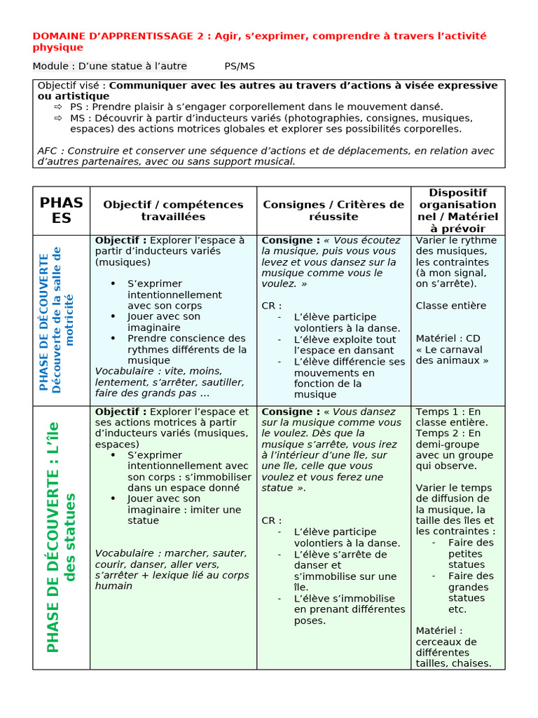 Module Danse Statues | PDF