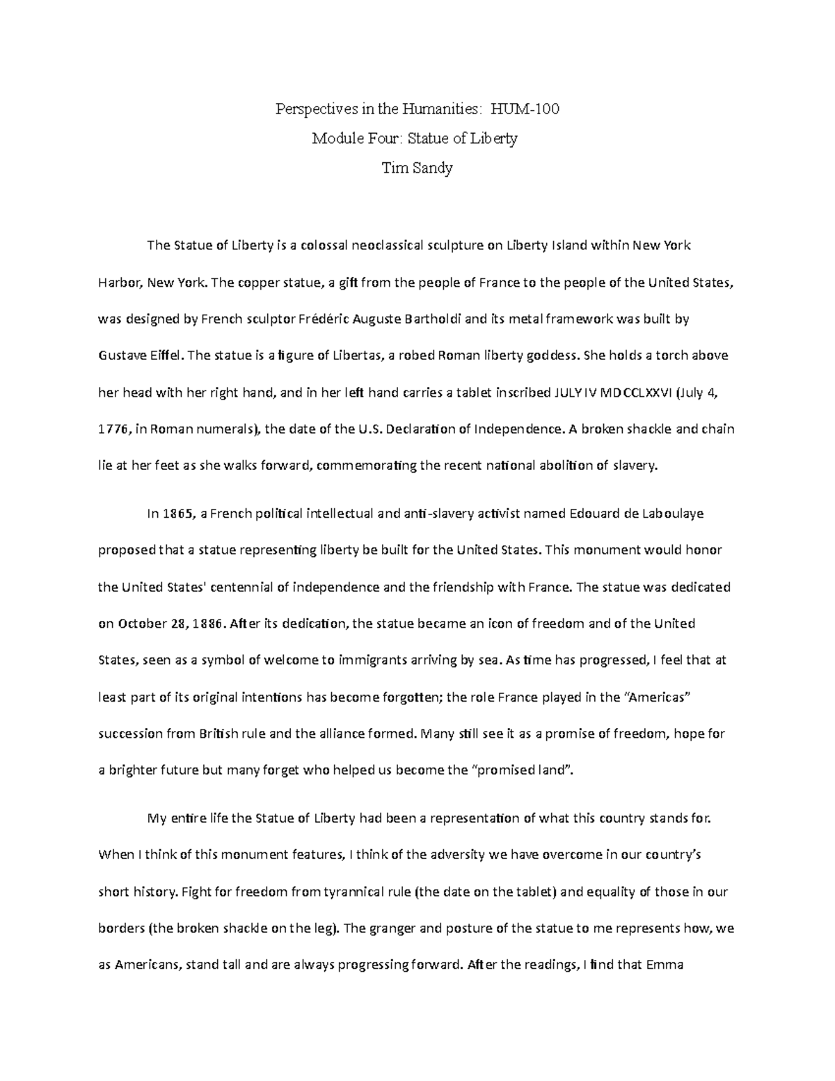 Module 4 - Statue of Liberty - Perspectives in the Humanities: HUM ...