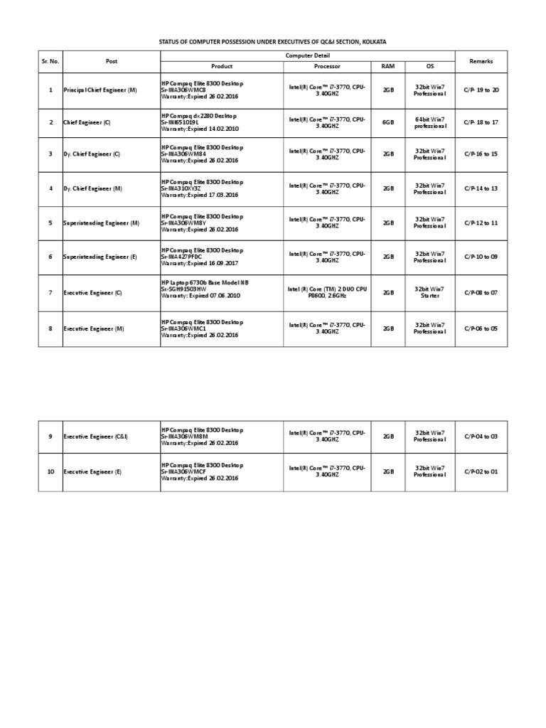 Status of Computer Possession Under Executives of Qc&I Section, Kolkata ...