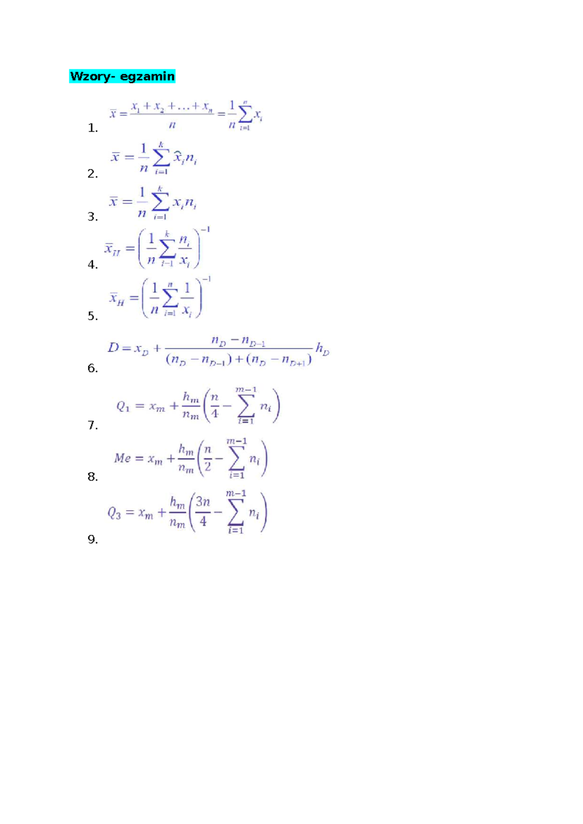 Wzory egzamin - Statystyka - . XX bk L X= = =—) X n no 1 k X =— E Xn, n ...