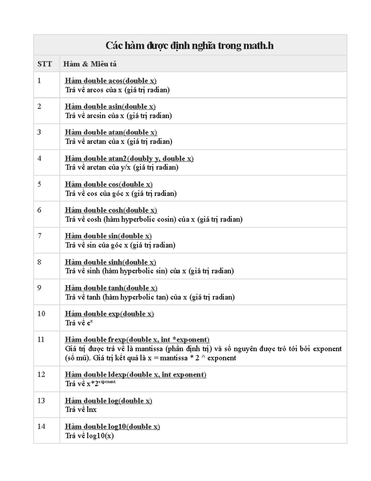 Các hàm được định nghĩa trong math stdio string trong C - Các hàm được ...