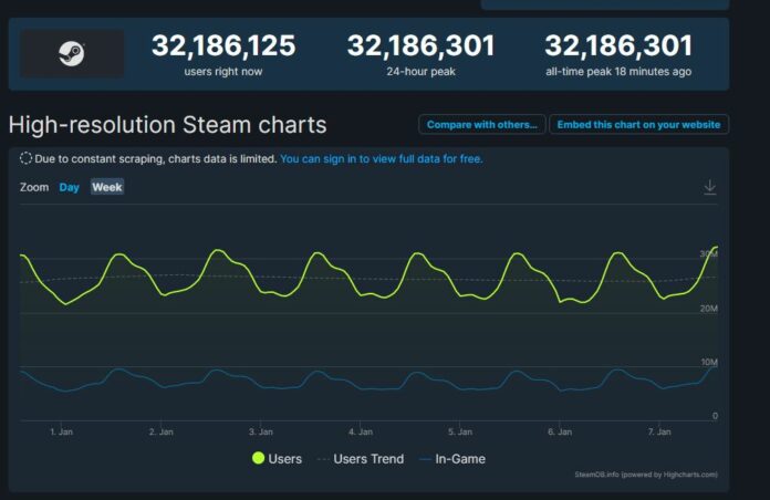 Steam Sets New Record With Over 32 Million Concurrent Users