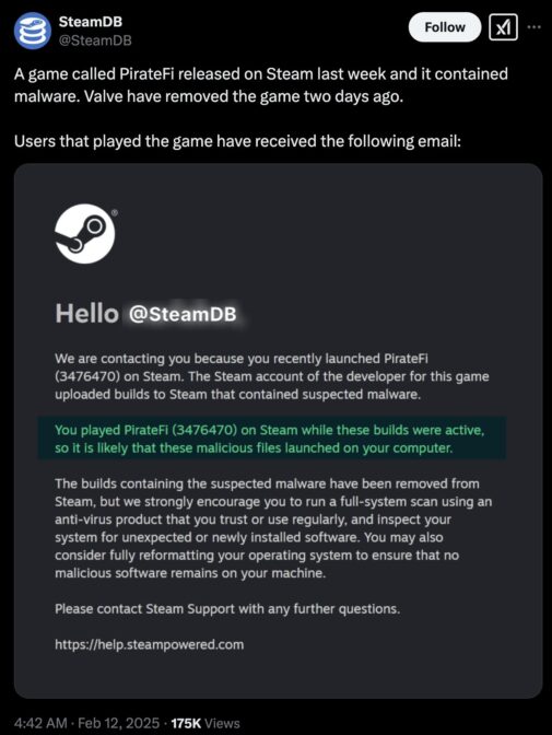 Steam下架帶惡意軟體的免費遊戲,Valve向受影響玩家發出警告信 | 4Gamers