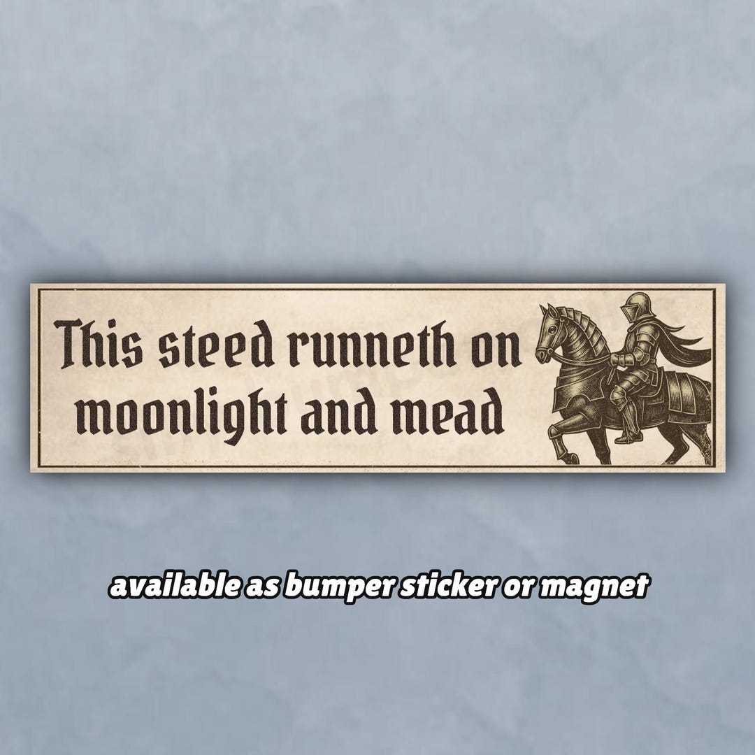 Funny Bumper Sticker or Bumper Magnet "this Steed Runneth on Moonlight ...