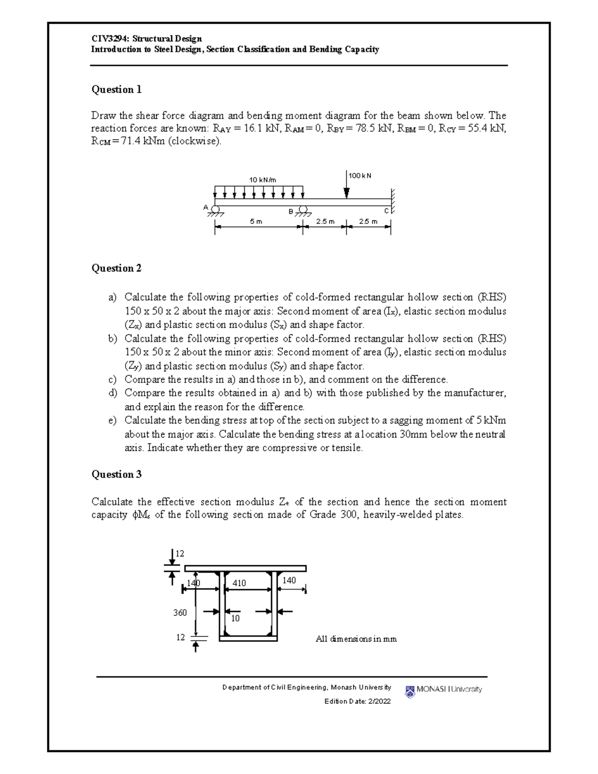 Week 1 Practice Problems (Solution) - Introduction to Steel Design ...