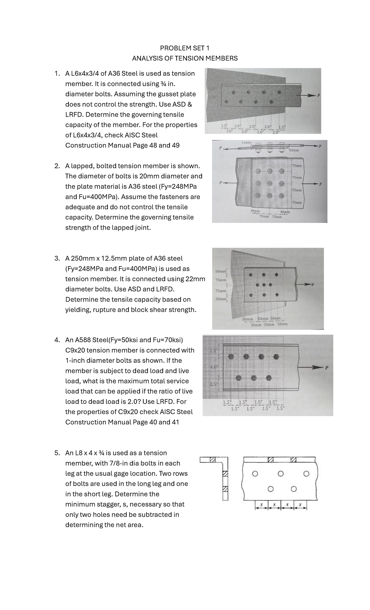 STEEL Problem Set 1: Analysis of Tension Members & Design Calculations ...