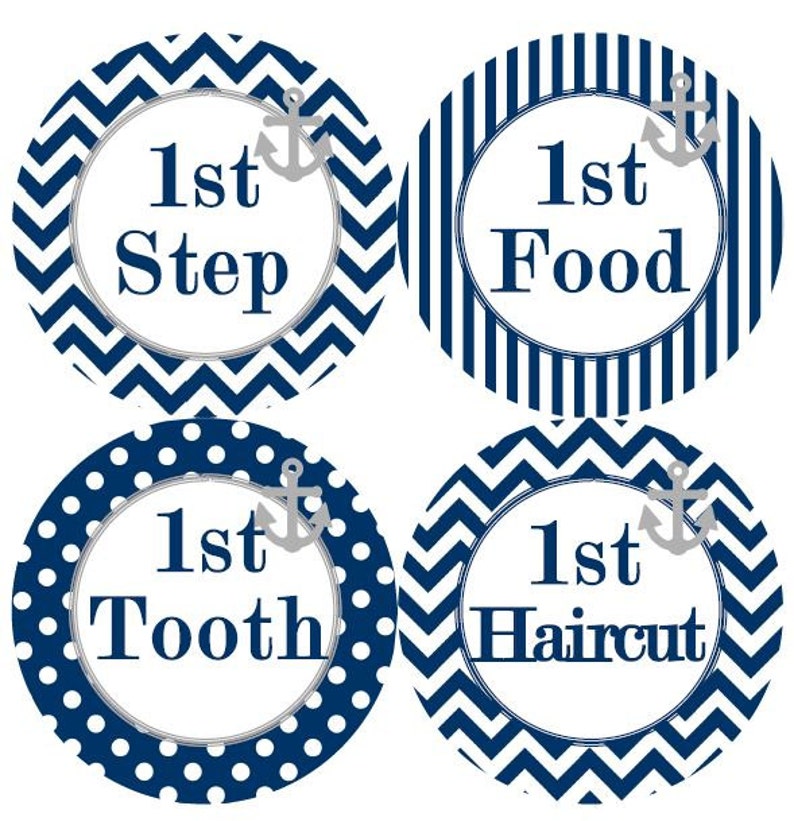 Baby 1st First MILESTONES Growth Stickers Nautical Navy Grey Anchor ...