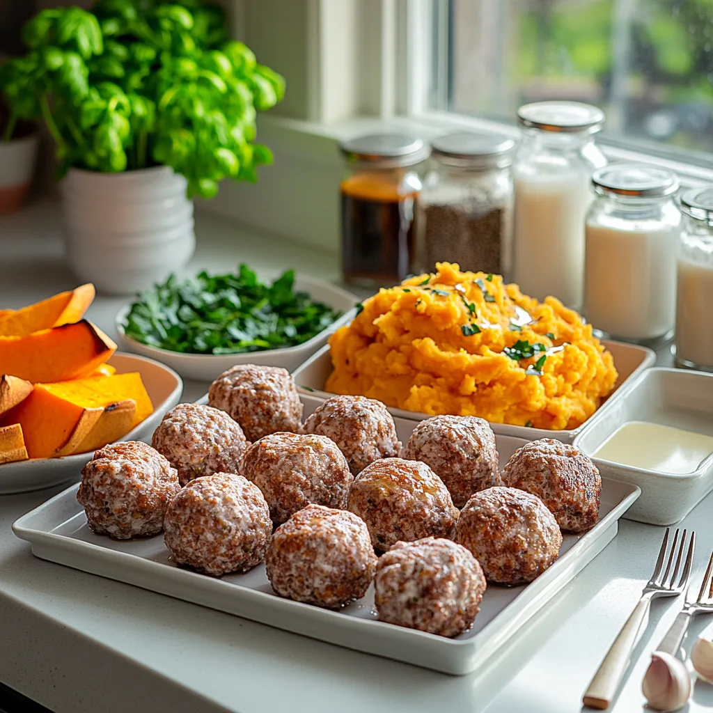 Irresistible Meatballs with Sweet Potato Mash & Bourbon-Maple Sauce