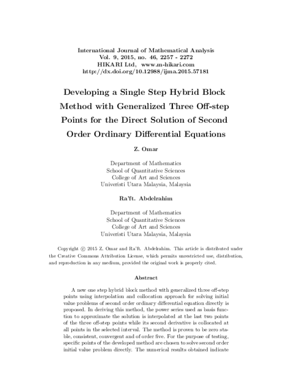 (PDF) New hybrid block method with three off-step points for solving ...