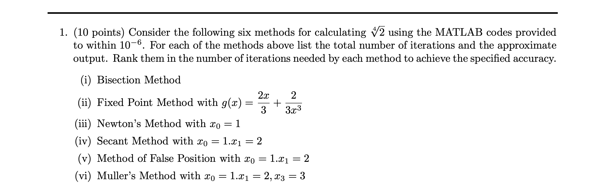 Solved (10 points) Consider the following six methods for | Chegg.com