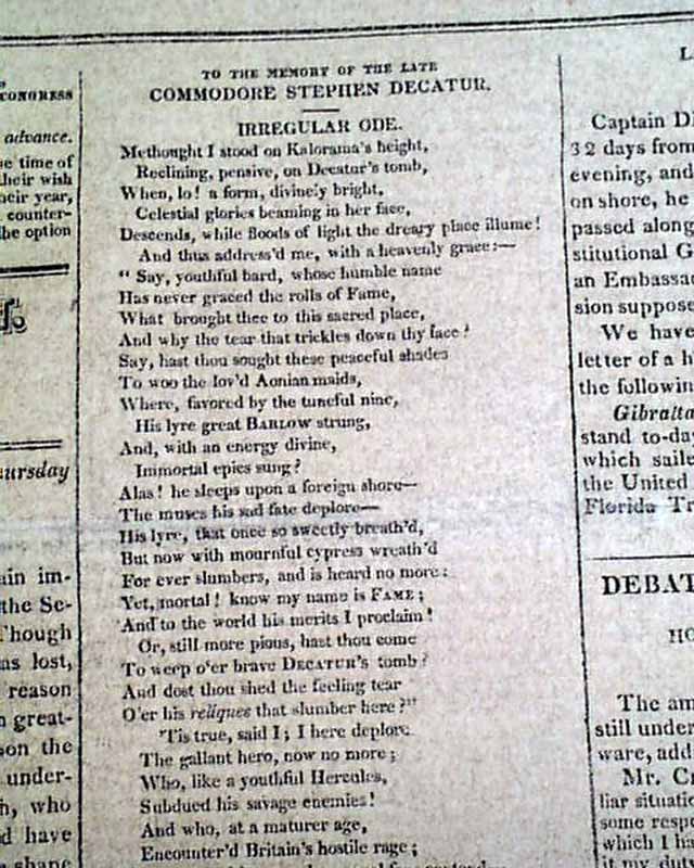 Poem on the death of naval hero Stephen Decatur... - RareNewspapers.com