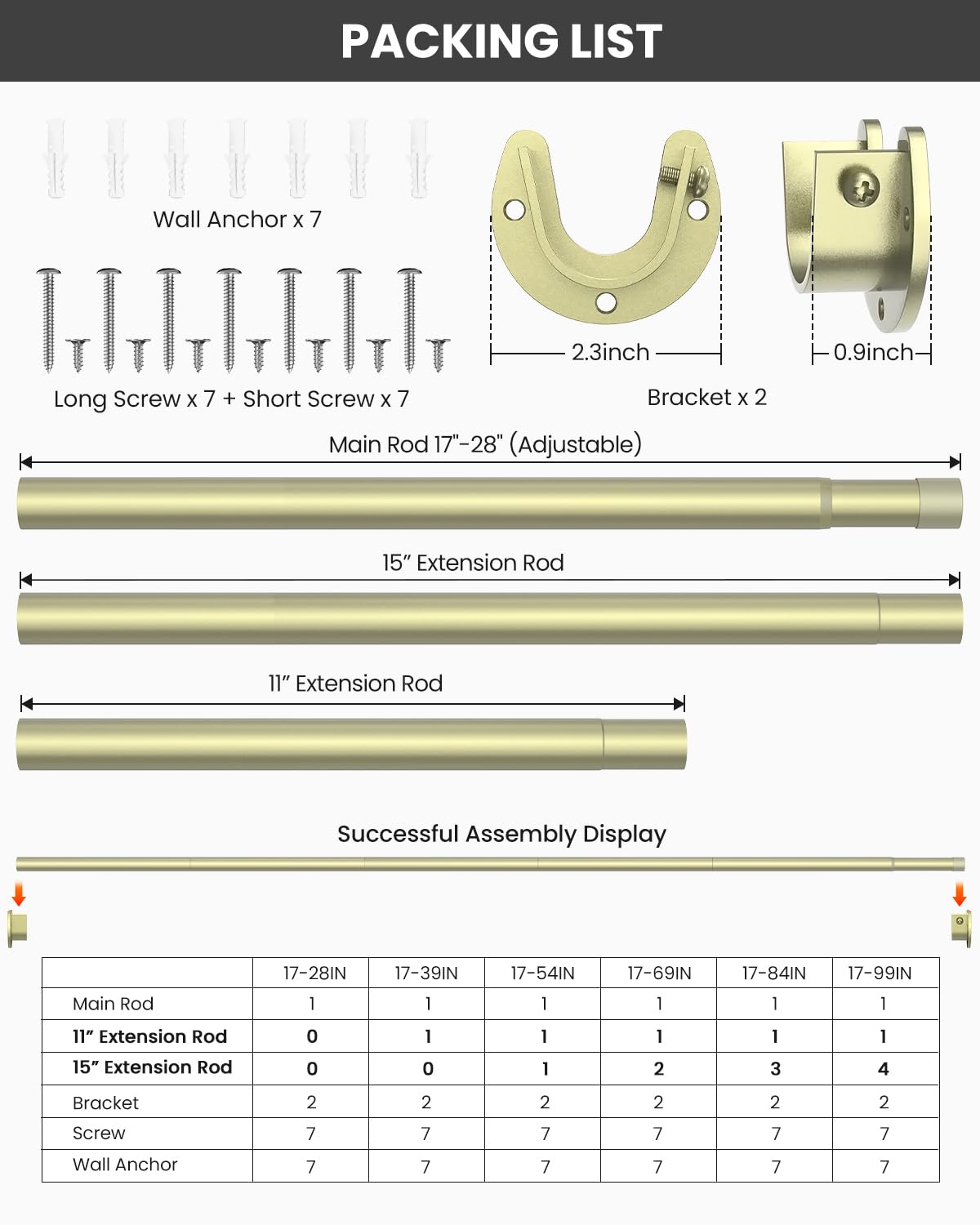 Closet Rods for Hanging Clothes, 17 to 99 Inches No-Cut Stepless ...