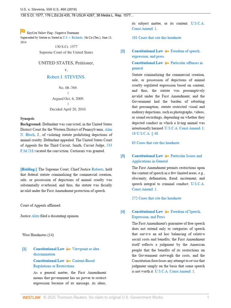 US V Stevens | PDF | First Amendment To The United States Constitution ...