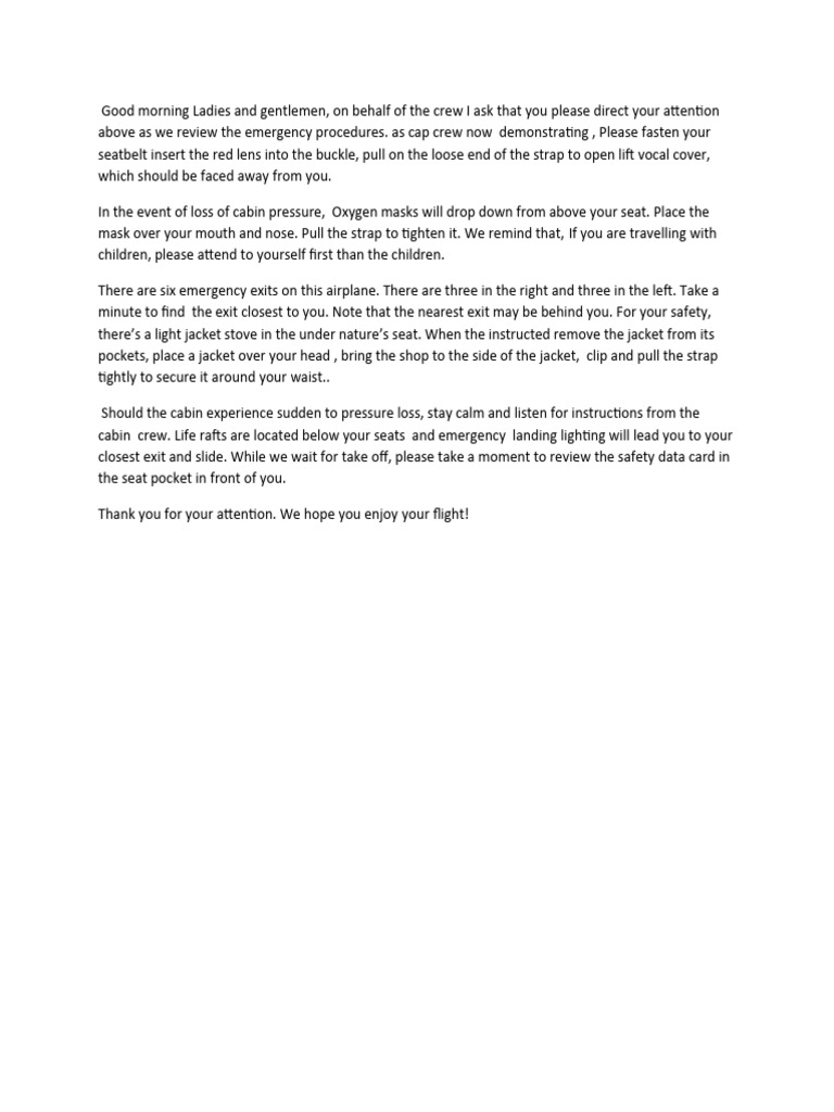 Flight Attendant Script.doc - Flight Attendant Announcement 1 3 Safety ...
