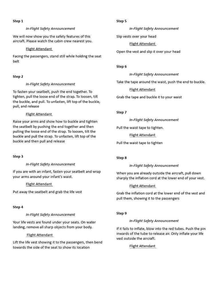 FLIGHT ATTENDANT safety demonstration Script - Cabin Crew - English for ...