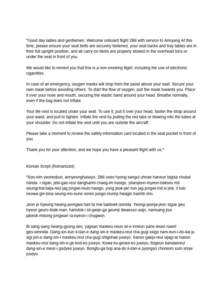 Inflight Announcement Scripts for Airlines | PDF | Flight Attendant ...