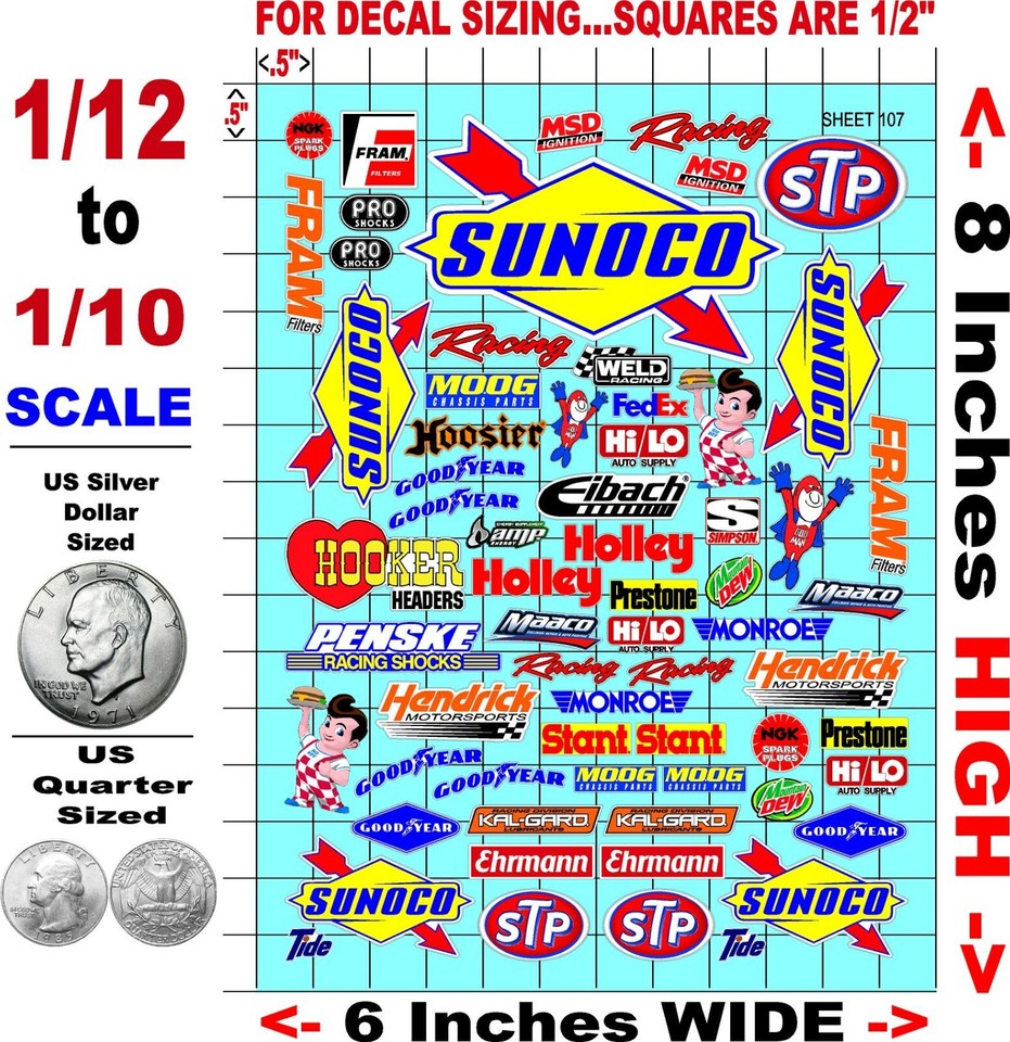 CLEAR VINYL Sticker Sheet 83 Sponsor Decal 1/24-1/16 Scale DIE CUT ...