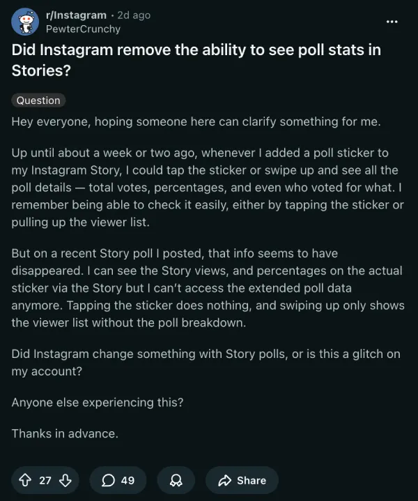 Instagram Story poll breakdown, voter details, and “Share results ...