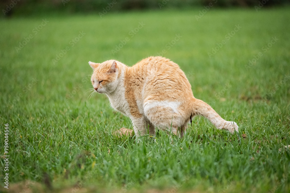 Gato cagando en la hierba Stock Photo | Adobe Stock