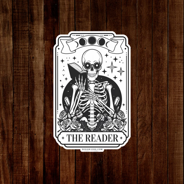 The Reader Tarot Card Skeleton Reading Book Occult Stickerphone Decal ...