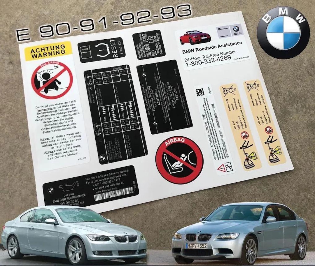 BMW Decal Sticker Label Sets for E39 520 M5 E46 E60 E87 E90 E91 E92 E93 ...
