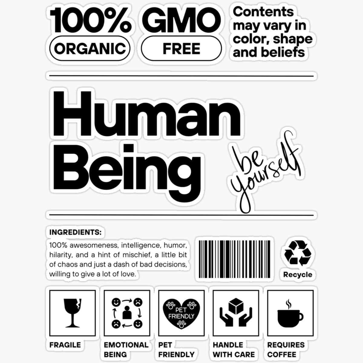 Kira Sticker - Fragile Human - Handle With Care Sticker - Walmart.com