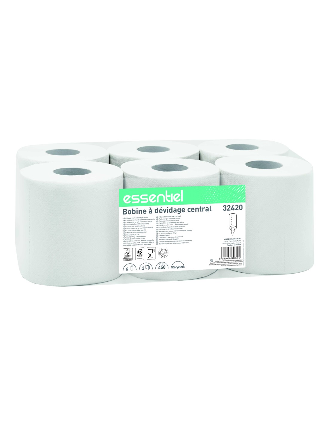 Bobine dévidage central Écolabel 450 formats x6 – papier essuyage ...