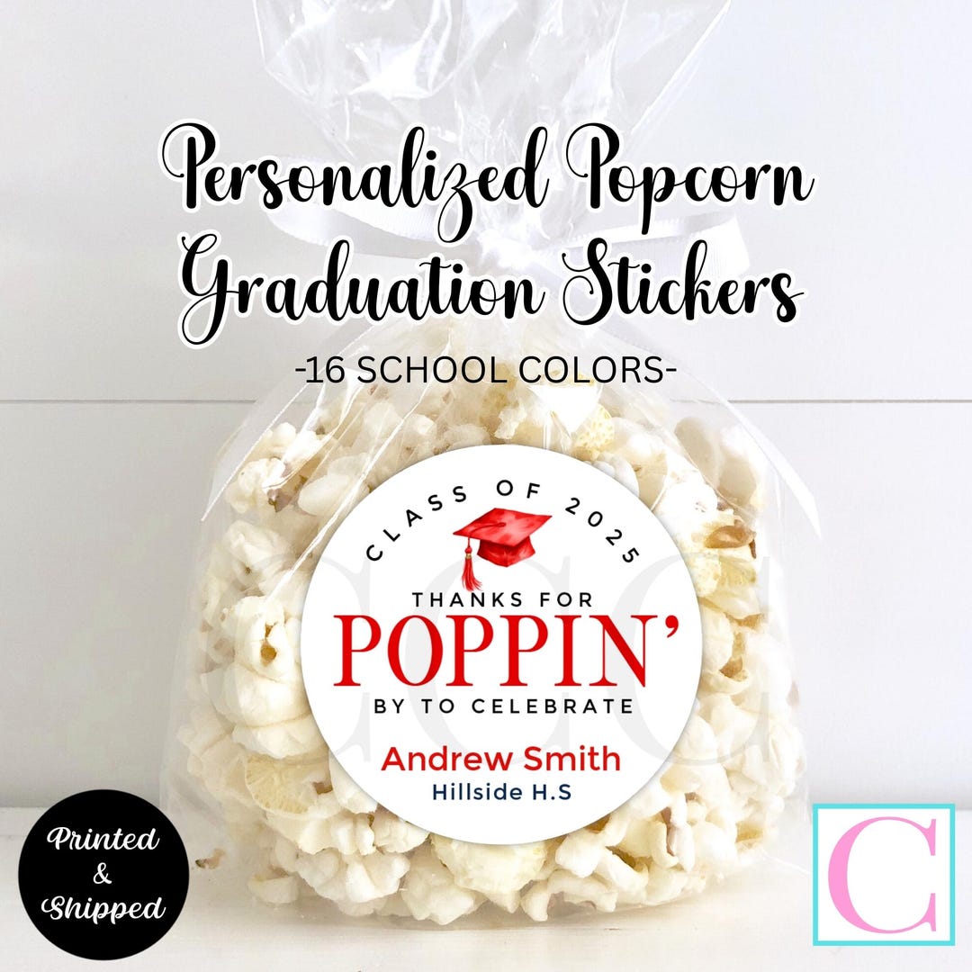 Graduation Popcorn Stickers, Class of 2026 Personalized Grad Popcorn ...