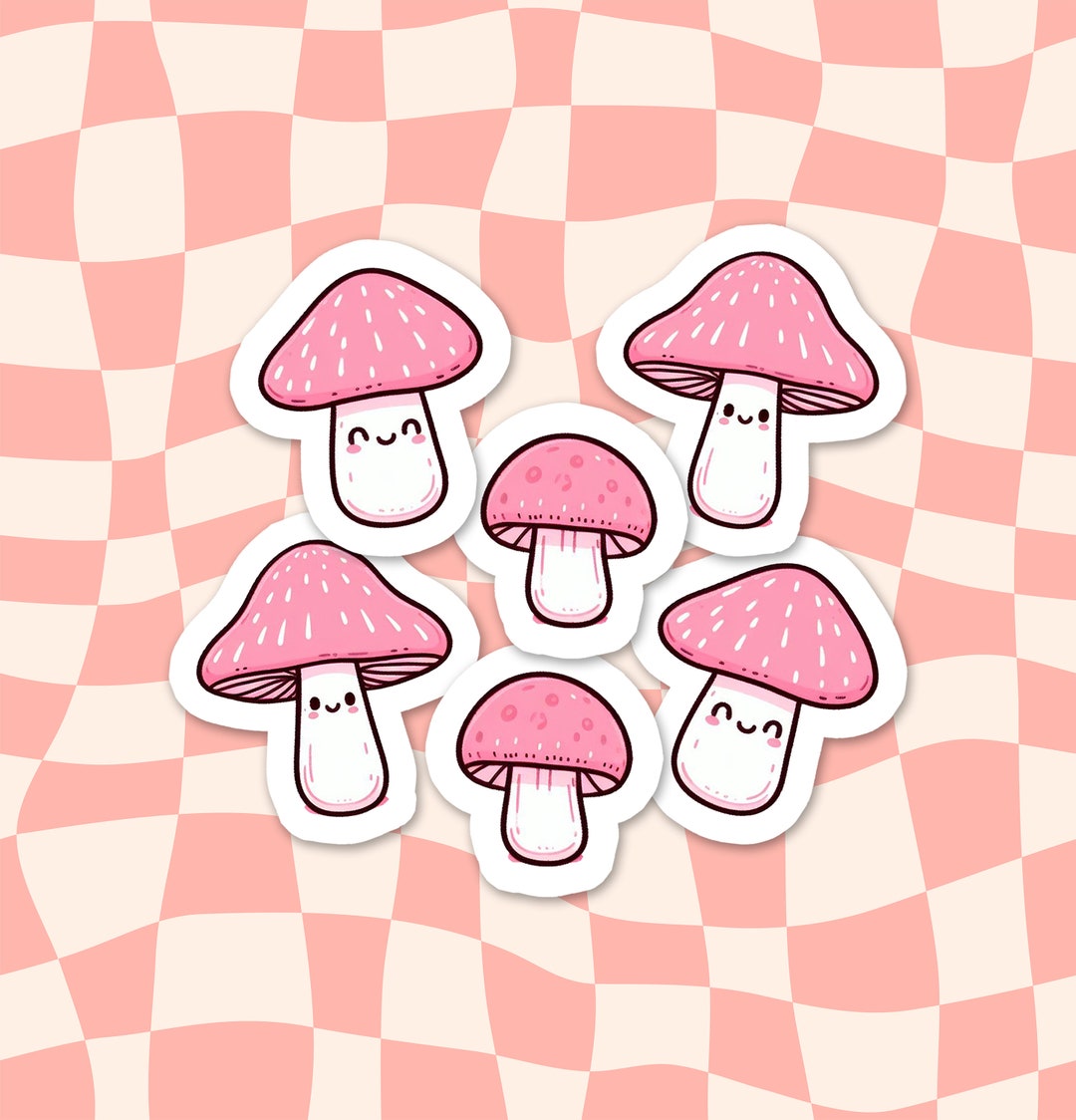 Pink Mushroom Sticker Pack, Set of 6, Mushroom Stickers, Trendy Cute ...