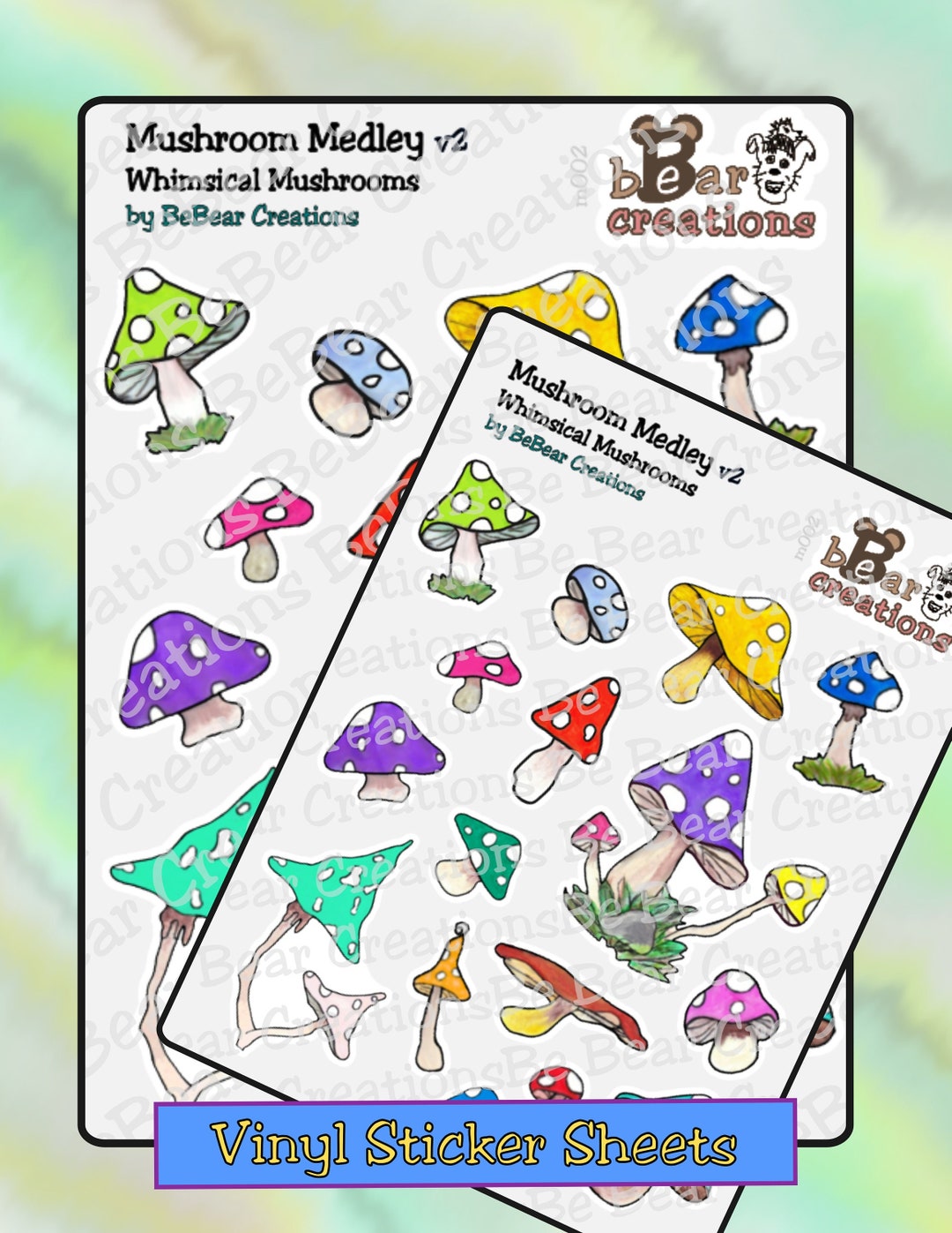 Cute Vinyl Mushroom Sticker Sheet V2 | Whimsical Hand-drawn Stickers ...