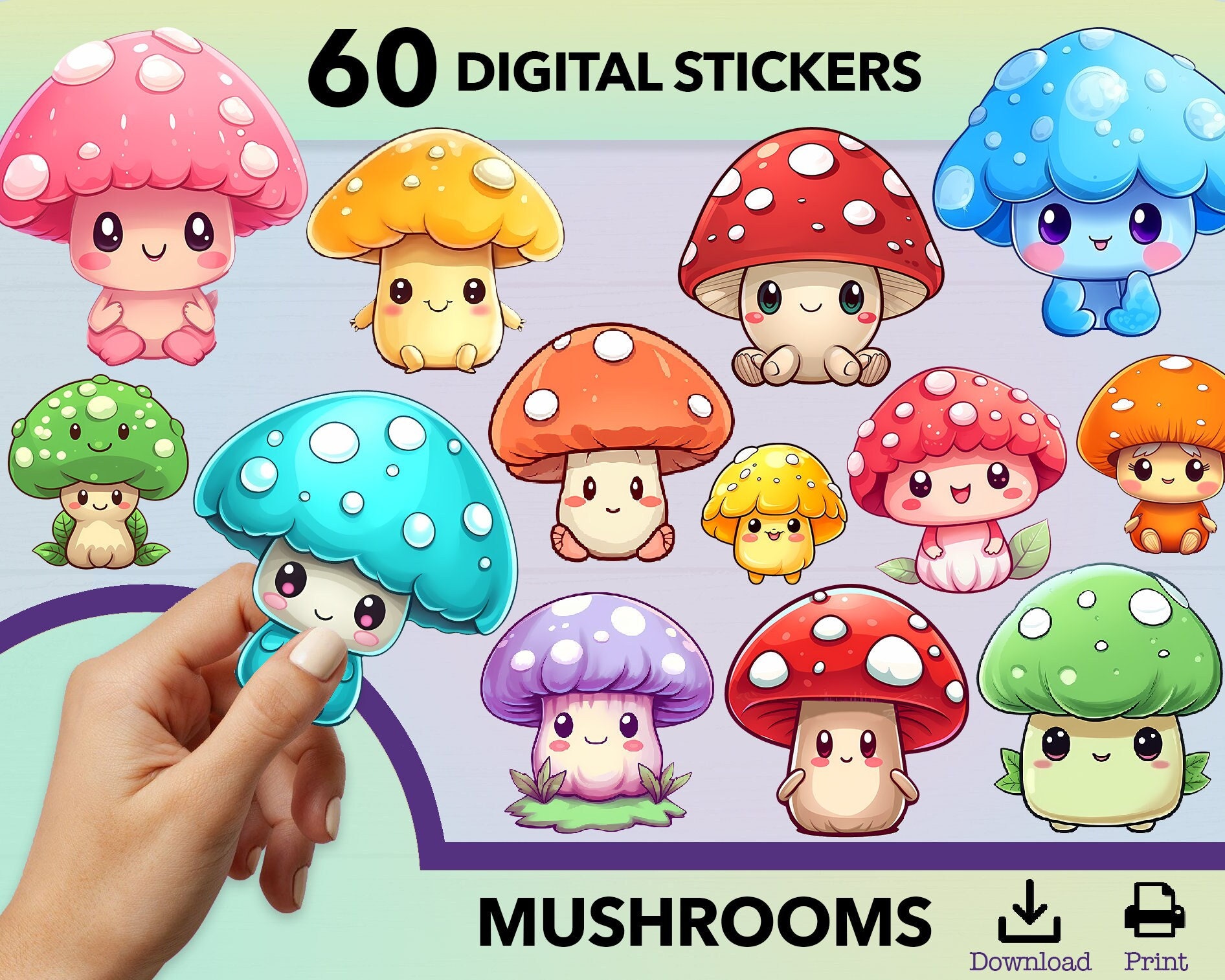 Cute Mushroom Stickers, Colorful Mushroom Sticker Set, Forest and ...