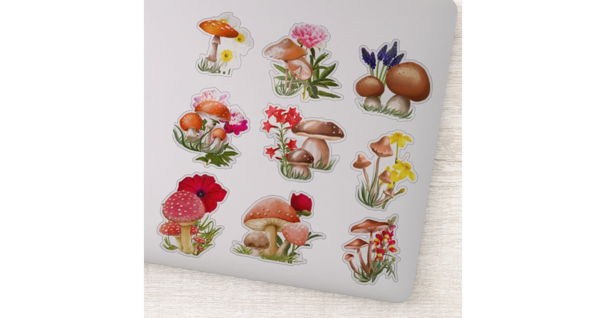 Mushroom Sticker 11 Pack | Sticker collection, Floral stickers ...