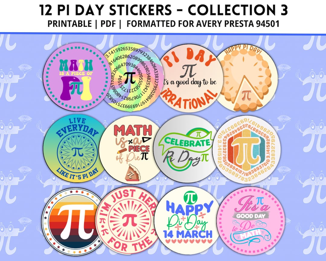 Pi Day Stickers, Collection 3, Printable Stickers, Pi Day Decor, Math ...
