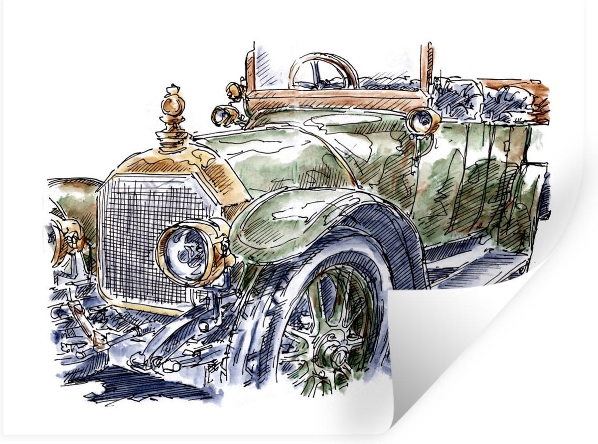 Muurstickers - Sticker Folie - Oldtimer auto - Vintage - Tekening ...