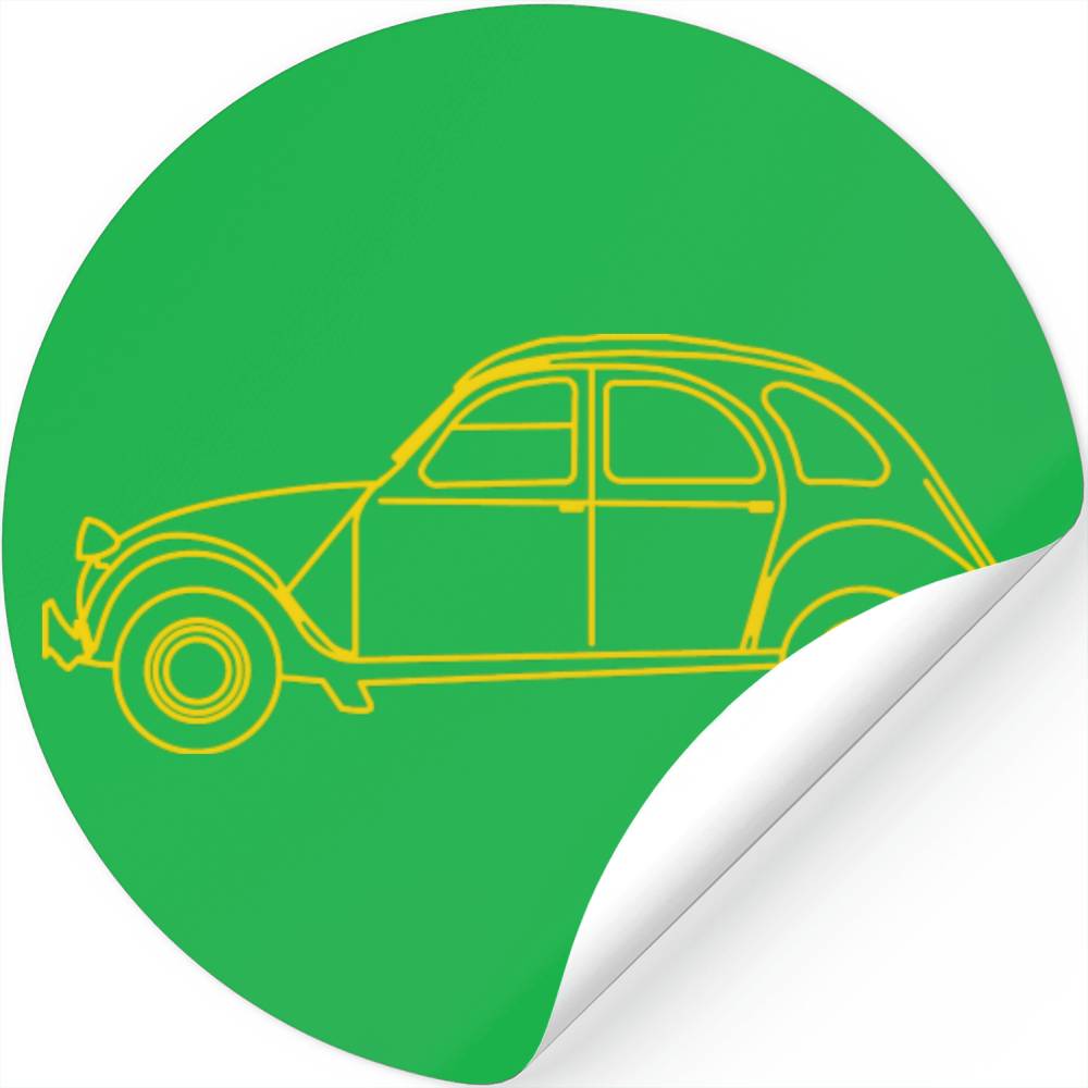 Oldtimer 2cv Gelbe Linienzeichnung Stickers